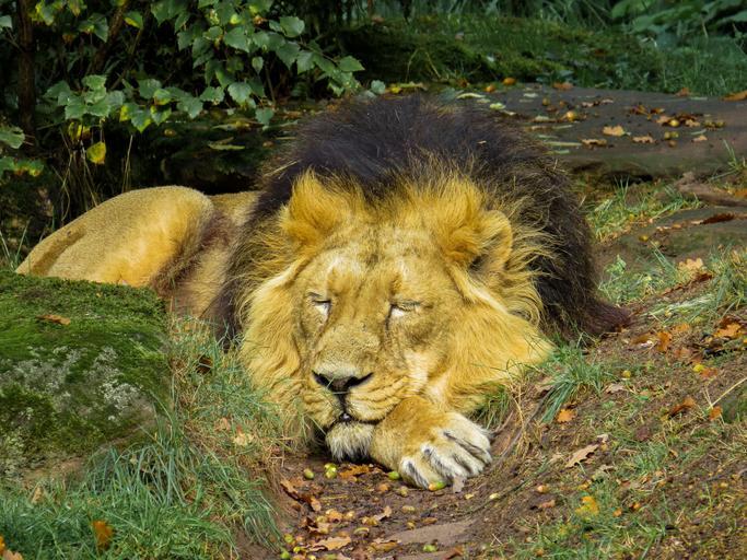 Keywords: lion predator cat zoo nuremberg close eyes view sleep