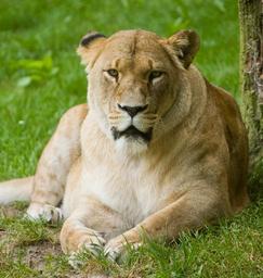 Keywords: lion predator rest nature park female zoo wild animal lioness strong