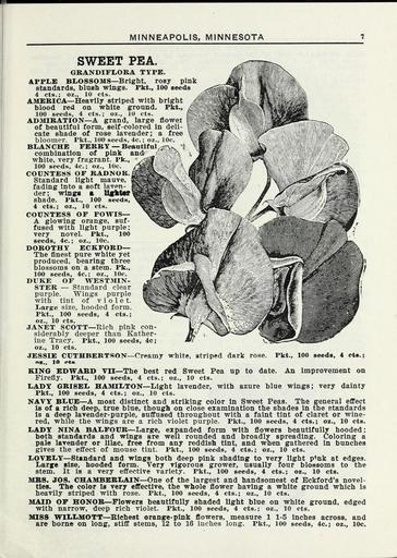 | Keywords: Lippincott seeds (16185508358).jpg MINNEAPOLIS MINNESOTA <br> SWEET PEA <br> GBANDIFI OBA TYPE <br> BliOSSOMS Bright rosy <br> pink <br> Pkt 100 seeds <br> APPLE <br> Standards blush wings <br> 4 cts ; oz 10 cts <br> AMERICA Heavily striped with bright <br> blood red on white ground Pkt <br> 100 seeds 4 cts ; oz 10 cts <br> ADMIBATION A grand large flower <br> of beautiful form self-colored in deli- <br> cate shade of rose lavender; a free <br> bloomer Pkt 100 seeds 4c ; oz 10c <br> BLANCHE FEBBY Beantifnl -;rsx <br> combination of pink and _ A <br> white very fragrant Pk <br> 100 seeds 4c ; oz 10c <br> COUNTESS OF BADNOB <br> Standard light mauve <br> fading into a soft laven- <br> der; wlnsrt ft Uffhttt <br> shade Pkt 100 seeds <br> 4 cts ; oz 10 cts <br> COUNTESS OF POWIS <br> A glowing orange suf- <br> fused with light purple; <br> very novel Pkt 100 <br> seeds 4c ; oz 10c <br> DOBOTHY ECKFOBD <br> The finest pure white yet <br> produced bearing three <br> blossoms on a stem Pk <br> 100 seeds 4c ; oz 10c <br> DUKE OF WESTMIN- <br> STEB Standard clear <br> purple Wings purple <br> with tint of violet <br> Large size hooded form <br> Pkt 100 seeds 4 cts ; <br> oz 10 cts <br> JANET SCOTT Rich pink con- <br> siderably deeper than Kather- <br> iue Tracy Pkt 100 seeds 4c; <br> oz 10 cts <br> JESSIE CUTHBEBTSON Creamy white striped dark rose <br> AC 10 Ota <br> KINO EDWABD VII The best red Sweet Pea up to date <br> Firefly Pkt 100 seeds 4 cts ; oz 10 cts <br> LADY GBI8EL HAMILTON Light lavender with azure blue wings; very dainty <br> Pkt 100 seeds 4 cts ; oz 10 cts <br> NAVY BLUE A most distinct and striking color In Sweet Peas The general effect <br> is of a rich deep true blue though on close examination the shades in the standards <br> is a deep lavender-purple suffused throughout with a faint tint of claret or wine- <br> red while the wings are a rich violet purple Pkt 100 seeds 4 cts ; oz 10 cts <br> LADY NINA BALFOUB Large expanded form with flowers beautifully hooded; <br> both standards and wings are well rounded and broadly spreading Coloring a <br> pale lavender or lilac free from any reddish tint and when gathered in bunches <br> gives the effect of mouse tint Pkt 100 seeds 4 cts ; oz 10 cts <br> LOVELY Standard and wings both deep pink shading to very light p nk at edges <br> Larje size hooded form Very vigorous grower usually four blossoms to the <br> stem It is a very effective variety Pkt 100 seeds 4 cts ; oz 10 cts <br> MBS JOS CHAMBERLAIN One of the largest and handsomest of Eckford's novel- <br> ties The color is very effective the whole flower having a white ground which is <br> heavily striped with rose Pkt 100 seeds 4 cts ; oz 10 cts <br> MAID OF HONOR Flowers beautifully shaded light blue on white ground edged <br> with narrow deep rich violet Pkt 100 seeds 4 cts ; oz 10 cts <br> MISS WILLMOTT Richest orange-pink flowers measure 1 1-5 inches across and <br> are borne on long stiff stems 12 to 16 inches long Pkt 100 seeds 4c ; oz 10c <br> Pkt 100 seeds 4 cts ; <br> An improvement on 42162048 132824 65968 Page 7 Text http //www biodiversitylibrary org/page/42162048 1915 Henry G Gilbert Nursery and Seed Trade Catalog Collection ; Miss C H Lippincott Firm NameFound Nina NameConfirmed Nina NameBankID 3002505 Biodiversity Heritage Library Lippincott seeds 1915 Garden Stories Catalogs Flowers Fruit Nurseries Horticulture Seeds Vegetables U S Department of Agriculture National Agricultural Library bhl page 42162048 dc identifier http //biodiversitylibrary org/page/42162048 bhlGardenStories BHLinbloom nurseries horticulture u s department of agriculture national agricultural library bhlgardenstories bhlinbloom Information field Flickr posted date ISOdate 2015-01-26 Check categories 2015 August 25 CC-BY-2 0 BioDivLibrary https //flickr com/photos/61021753 N02/16185508358 2015-08-25 05 56 38 cc-by-2 0 PD-old-70-1923 Lippincott seeds Photos uploaded from Flickr by FĂŚ using a script |