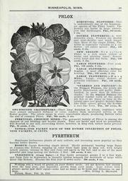 | Keywords: Lippincott seeds (16185781378).jpg MINNEAPOLIS MINN <br> 29 <br> PHLOX <br> HORTENSIA FLOWERED This <br> is undoubtedly one of the handsom- <br> est species of the Phlox family The <br> flowers are borne in large umbels <br> just like Hydrangea Pkt 150 seeds <br> 5 cts <br> DOUBLE FLOWERING A very <br> desirable class Flowers are double <br> and semi-double and much longer <br> than those of the single Phlox The <br> white is especially valuable as a cut <br> flower All colors mixed Pkt 150 <br> seeds 5 cts <br> NEW YELLOW N e w yellow <br> Phlox is a rich straw yellow of <br> warm and glowing tones ; flowers <br> extra large and fine form Pkt 150 <br> seeds 5 cts <br> LARGE FLOWERED Pure pink <br> Pkt 150 seeds 5 cts <br> LARGE FLOWERING Brilliant <br> Scarlet A most effectual color for <br> bedding Pkt 150 seeds 5 cts <br> LARGE FLOWERING Pure <br> W hite Large round flowers of <br> splendid substance Pkt 150 seeds <br> 5 cts <br> STARRED AND FRINGED In <br> the Fringed Flowers the petals are <br> partly fimbricated and partly three- <br> toothed in more than 20 different <br> shades In the Starred Phloxes the <br> pointed central teeth of the petals <br> are five or six times as long as the <br> lateral ones and project beyond them <br> like little spines giving the flowers <br> a star-like form Pkt 200 seeds 5c <br> DRUMMONDII GRANDIFLORA Their long duration in bloom combined with <br> their almost unequaled richness of color renders them invaluable service in the <br> flower garden The colors range in every conceivable shade producing flowers twice <br> the size of common Phlox Pkt 200 seeds 5 cts <br> PERENNIAL CHOICEST MIXED The perennial variety of Phlox is among the <br> choicest of our bedding and border plants They are hardy and need no protection ; <br> will flourish in any soil succeeding better however in deep rich rather moist ground <br> Pkt 25 seeds 5 cts <br> NOTICE ONE PACKET EACH OF THE ENTIRE COLLECTION OF PHLOXยป <br> NINE PACKETS 35 CENTS <br> PYRETHRUM <br> Handsome herbaceous plants of easy culture and becoming more popular as they <br> become better known <br> ROSEUM Large flowering single mixed Hardy perennial bearing large Daisy <br> or Cosmos-like flowers ranging in color from light pink to deep red with bright <br> yellow centres ; blooms in May and June and again in the fall and is one of the most <br> graceful and long-lasting cut flowers; 2 feet 100 seeds 8 cts <br> TJLIGINOSUM Giant Daisy A fine hardy perennial grows 3 to 4 feet high <br> and from July to September is literally hidden beneath the multitude of large white <br> daisy-like flowers Blooms the first year if sown early 100 seeds 8 cts <br> Writing you a word of praise on your flower seeds All my fiowers last season <br> were the best ever just beautiful grown from your seeds Your Asters were <br> grand never saw their equal some had as many as 82 buds and blossoms on one <br> stem Mrs Irving L Maynard <br> Poison Mont Feb 24 1915 42205437 132981 65968 Page 29 Text http //www biodiversitylibrary org/page/42205437 1915 Henry G Gilbert Nursery and Seed Trade Catalog Collection ; Miss C H Lippincott Firm NameFound Hydrangea NameConfirmed Hydrangea sect Cornidia Ruiz Pav Engl EOLID 40082 NameFound Phlox NameConfirmed Phlox L EOLID 40661 NameFound Phlox hortensia NameFound Pyrethrum NameConfirmed Pyrethrum Medik EOLID 2879753 NameBankID 8777274 Biodiversity Heritage Library Lippincott seeds 1916 Garden Stories Catalogs Flowers Fruit Nurseries Horticulture Seeds Vegetables U S Department of Agriculture National Agricultural Library bhl page 42205437 dc identifier http //biodiversitylibrary org/page/42205437 bhlGardenStories BHLinbloom nurseries horticulture u s department of agriculture national agricultural library bhlgardenstories bhlinbloom Information field Flickr posted date ISOdate 2015-01-26 Check categories 2015 August 25 CC-BY-2 0 BioDivLibrary https //flickr com/photos/61021753 N02/16185781378 2015-08-25 05 51 31 cc-by-2 0 PD-old-70-1923 Lippincott seeds Photos uploaded from Flickr by Fรฆ using a script |