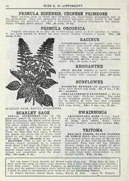 | Keywords: Lippincott seeds (16185787498).jpg 32 <br> MISS C H LIPPiNCOTT <br> PRIMULA SINENSIS CHINESE PRIMROSE <br> Many persons seem to think that Primulas are successfully propagated only iu <br> the greenhouse They are unequaled as winter bloomers easily grown if the right <br> conditions are observed and give a succession of flowers throughout the season <br> Single fringed finest mixed Pkt 50 seeds 10 cts <br> PRIMULA OBCONICA <br> Primula Obconica is as near an everblooming plant as it is possible to obtain <br> It has been known to flower for over twelve months without a break Pkt 100 <br> seeds 5 cts <br> RACINUS <br> ZANZIBARIENSIS An entirely new class <br> from Africa with leaves often measuring two <br> feet across the seeds are marbled speckled <br> and spotted I'kt 8 seeds 5 cts <br> CAMBOGIENSIS Large palm-like leaves of <br> a brilliant bronzy-red maroon color with <br> large red veins Pkt 10 seeds 5 cts <br> CASTOR-OIL BEAN Many choice varieties <br> mixed Pkt 10 seeds 5 cts <br> RHODANTHE <br> SWAN RIVER DAISY A lovely everlast- <br> ing either in the garden or for winter boquets ; <br> flowers white rose crimson Pkt 100 seeds <br> 6 cts <br> SUNFLOWER <br> MAMMOTH RUSSIAN Of gigantic dimen- <br> sions both flower and stalk Oz 8 cts ; 1 lb <br> 20c ; postpaid <br> CHRYSANTHE MUM-FEOWERED Grows <br> seven feet high Perfectly double The color <br> is the brightest golden yellow The flowers <br> are so perfect in form that they resemble <br> very double Chrysanthemum-flowered Asters <br> with long stems Pkt 5 cts ; oz 25 cts <br> SCARLET SAGE SALVIA SPLENDENS <br> SCARLET SAGE <br> SALVIA SPLENDENS One of the <br> grandest plants in cultivation a bed of <br> them surpassing the finest scarlet Geran- <br> iums in brilliancy and continuous bloom <br> The lower spikes often measure 10 to 12 <br> inches in length and there are as many <br> as 200 spikes on a well grown plant <br> From the time they first begin to flower <br> the plants are never out of bloom until <br> killed by late frosts It is easily grown <br> from seed Pkt 100 seeds 5 cts <br> BONFIRE This is one of the finest <br> Scarlet Β» Sages growing in a compact <br> bush about 2 feet high by 2 feet in diam- <br> eter Its erect spikes of brilliant scarlet <br> flowers stand clear above the dark green <br> foliage and completely cover the plant <br> Pkt 100 seeds 8 cts <br> SWAINSONIA <br> GRANDIFLORA ALBA 3 feet Load- <br> ed from tip to base with graceful sprays <br> of large pure white waxy sweet <br> pea-like flowers; acacia-like foliage Pkt <br> 10 cts <br> TRITOMA <br> RED-HOT POKER FLAME FLOWER <br> OR TORCH LILY Seed sown indoors or <br> in a hotbed before the end of March and <br> planted out in May will bloom freely and <br> constantly from July till late Autumn <br> Flower stems rise to a height of about <br> three feet; the spikes 41/2 to G inches long <br> thickly set with tubular flowers ranging <br> in color from light citron-yellow to rich <br> orange-scarlet Pkt 15 cts <br> For ten years I have bought my flower seeds from you From time to time I <br> have tried the seeds of other large growers but I have found none more satisfac- <br> tory than yours Your double Poppies in particular are the finest I have ever <br> seen and the annual Coreopsis more varied and larger than any other I have tried <br> I shall be glad to recommend your seeds to all my gardening friends <br> St John's Rectory Sandy Hook Conn March 15 191 5 Kate W Tibbals <br> ’ 42205440 132981 65968 Page 32 Text http //www biodiversitylibrary org/page/42205440 1915 Henry G Gilbert Nursery and Seed Trade Catalog Collection ; Miss C H Lippincott Firm NameFound Coreopsis NameConfirmed Coreopsis L EOLID 38349 NameFound Primula obconica NameConfirmed Primula obconica EOLID 2892004 NameBankID 5850681 NameFound Primula sinensis NameConfirmed Primula sinensis EOLID 2892062 NameBankID 5850725 NameFound Rhodanthe NameConfirmed Rhodanthe EOLID 2918025 NameBankID 1674221 NameFound Rhodanthe NameConfirmed Rhodanthe EOLID 2918025 NameBankID 4894040 NameFound Salvia splendens NameConfirmed Salvia splendens EOLID 579412 NameBankID 2655330 NameFound Swainsonia grandiflora NameConfirmed Amsonia grandiflora EOLID 581394 NameBankID 2653308 NameFound Tritoma NameConfirmed Tritoma EOLID 35048 NameBankID 4378253 Biodiversity Heritage Library Lippincott seeds 1916 Garden Stories Catalogs Flowers Fruit Nurseries Horticulture Seeds Vegetables U S Department of Agriculture National Agricultural Library bhl page 42205440 dc identifier http //biodiversitylibrary org/page/42205440 bhlGardenStories BHLinbloom nurseries horticulture u s department of agriculture national agricultural library bhlgardenstories bhlinbloom Information field Flickr posted date ISOdate 2015-01-26 Check categories 2015 August 25 CC-BY-2 0 BioDivLibrary https //flickr com/photos/61021753 N02/16185787498 2015-08-25 05 50 46 cc-by-2 0 PD-old-70-1923 Lippincott seeds Photos uploaded from Flickr by FΓ¦ using a script |