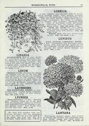 | Keywords: Lippincott seeds (16186027530).jpg MINNEAPOLIS MINN <br> 23 <br> LOBELIA <br> ery valuable and beautiful class of mostly <br> growing plants their delicate drooping <br> it and the profusion of their charming little <br> blue and white flowers render them exceed - <br> -'f ingly ornamental for vases or hanging <br> baskets and rockeries blooming from <br> June to November while for border <br> y cultivation they are equally effective <br> v Mixed colors Pkt 500 seeds 5 cts <br> 3TAK OF IS CHI Of very dwarf <br> erect growth forming dense balls of <br> charming azure blue flowers Pkt 400 <br> seeds 5 cts <br> WHITE GEM The best dwarf white <br> variety Pkt 400 seeds 5 cts <br> LUPINUS <br> TALL ANNUAL VARIETIES MIXED <br> 2 feet Ornamental free flowering easily <br> grown with long graceful spikes of rich <br> and variously colored pea-shaped flowers; <br> valuable for mixed flower borders and <br> beds Pkt 5 cts <br> LINARIA <br> RENILWOKTH IVY A very pretty <br> and well known hardy perennial trail- <br> ing plant for covering rock work and <br> very useful for hanging baskets The <br> flowers are small but pretty and for a <br> drooping plant nothing can be better <br> as it is easily grown from seed Pkt <br> 800 seeds 5 cts <br> LINUM <br> CRIMSON ELAX Excellent for dumps <br> and edgings and one of the best and <br> most showy hardy annuals for bedding <br> May be raised in any quantity from <br> seed sown in March or April where the <br> plants are intended to flower They are <br> not at all fastidious regarding soil <br> doing well in any ordinary garden <br> Pkt 200 seeds 4 cts <br> LAVENDER <br> OLD-FASHIONED SWEET A well- <br> known sweet scented hardy perennial <br> bearins Ions spikes of blue flowers <br> Pkt 100 seeds 8 cts <br> LYCHNIS <br> CHALCEDONICA 2 feet Burning <br> Star Flowers which are of the most <br> fiery red imaginable appear in clusters <br> each individual blossom forming a per- <br> fect maltese cross Will bloom from <br> seed the first year Pkt 5 cts <br> We were well satisfied with our <br> former purchase and are planning <br> on a nice order for you this Fall in <br> the plant and bulb line Ed B <br> Trickett Little Rock Ark 1-16-'15 <br> LANTANA <br> Well-known shrubby plants with cluster <br> of verbena-like flowers and producing their <br> pink yellow orange and white heads in <br> great abundance Mixed Pkt 30 seeds 5c 42205431 132981 65968 Page 23 Text http //www biodiversitylibrary org/page/42205431 1915 Henry G Gilbert Nursery and Seed Trade Catalog Collection ; Miss C H Lippincott Firm NameFound Lantana NameConfirmed Lantana L EOLID 37682 NameBankID 459108 NameFound Linaria NameConfirmed Linaria EOLID 44927 NameBankID 2655665 NameFound Linum NameConfirmed Linum EOLID 11210876 NameBankID 2652543 NameFound Lobelia NameConfirmed Lobelia sect Rhynchopetalum Fresenius Benth EOLID 2895791 NameFound Lupinus NameConfirmed Lupinus EOLID 11222714 NameBankID 2650646 NameFound Lychnis chalcedonica NameConfirmed Lychnis chalcedonica EOLID 587272 NameBankID 2646591 Biodiversity Heritage Library Lippincott seeds 1916 Garden Stories Catalogs Flowers Fruit Nurseries Horticulture Seeds Vegetables U S Department of Agriculture National Agricultural Library bhl page 42205431 dc identifier http //biodiversitylibrary org/page/42205431 bhlGardenStories BHLinbloom nurseries horticulture u s department of agriculture national agricultural library bhlgardenstories bhlinbloom Information field Flickr posted date ISOdate 2015-01-26 Check categories 2015 August 25 CC-BY-2 0 BioDivLibrary https //flickr com/photos/61021753 N02/16186027530 2015-08-25 05 50 43 cc-by-2 0 PD-old-70-1923 Lippincott seeds Photos uploaded from Flickr by FĂŚ using a script |