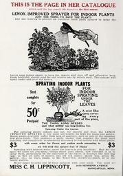 | Keywords: Lippincott seeds (16187567207).jpg THIS IS THE PAGE IN HER CATALOGUE <br> which sold for her nearly 500 Sprayers the first aeaaon <br> LENOX IMPROVED SPRAYER FOR INDOOR PLANTS <br> JUST THE THING TO SAVE THE PLANTS <br> Any one desiring to procure an excellent hand plant sprayer to spray the <br> leaves upon indoor plants to keep the insects and dust off and otherwise keep <br> them healthful should send 50c and receive one by return mail This sprayer will <br> spray under and over the leaves <br> SPRAYING INDOOR PLANTS <br> FOR <br> Sent <br> complete <br> for <br> Postpaid <br> INDOOR <br> SPRAYING <br> UNDER <br> THE <br> LEAVES <br> A mist like <br> spray cover- <br> ing every <br> part of the plant <br> THE THING LONG NEEDED <br> Jtut what mother was long looking for <br> Spraying Under the Leaves <br> For spraying plants indoors and out for insects and dust the LENOX <br> IMPROVED SPRAYER is the most serviceable for both the house and garden <br> House plants generally suffer from lack of moisture such as rain or the morning <br> dew gives them This produces a misty shower that supplies the plant most <br> naturally and completely as absolutely necessary to real success with house plants <br> with every order for flower and garden seeds amounting to <br> we will send this sprayer free of charge <br> Spraying with tobacco water under the leaves is very beneficial Had we the <br> space we could tell you many things about your plants how essential it is to <br> spray them particularly on the underside of the leaves; it destroys the rose bug <br> eggs; in fact all sorts of insects like the red spider raealy bug green fly <br> mildew etc on vines plants in the flower-bed strawberry-patch or in the <br> family garden <br> Never forget to order one of these sprayers with your seeds You need it <br> 3010 HENNEPIN AVENUE <br> MINNEAPOLIS MINN <br> 3 <br> 3 <br> MISS C H LIPPINCOTT 42205478 132981 65968 Cover http //www biodiversitylibrary org/page/42205478 1915 Henry G Gilbert Nursery and Seed Trade Catalog Collection ; Miss C H Lippincott Firm Biodiversity Heritage Library Lippincott seeds 1916 Garden Stories Catalogs Flowers Fruit Nurseries Horticulture Seeds Vegetables U S Department of Agriculture National Agricultural Library bhl page 42205478 dc identifier http //biodiversitylibrary org/page/42205478 bhlGardenStories BHLinbloom nurseries horticulture u s department of agriculture national agricultural library bhlgardenstories bhlinbloom Information field Flickr posted date ISOdate 2015-01-26 Check categories 2015 August 25 CC-BY-2 0 BioDivLibrary https //flickr com/photos/61021753 N02/16187567207 2015-08-25 05 50 37 cc-by-2 0 PD-old-70-1923 Lippincott seeds Photos uploaded from Flickr by Fæ using a script |