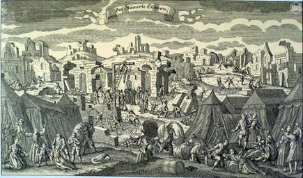 | Keywords: Lisbon1755hanging.jpg 1755 German copperplate image The Ruins of Lisbon Survivors camp in a rather fanciful tent city outside the city of Lisbon following the November 1 1755 earthquake The image shows criminal activity and general mayhem as well as the hanging of quake survivors under constabulary supervision Priests are present one holding a crucifix one possibly a prayer book so appear to be giving last rites to persons being hanged Courtesy of the National Information Service for Earthquake Engineering NISEE University of California Berkeley with permission permitted under the terms of non-profit sharing agreement Jan Kozak collection Original in Museu da Cidade Lisbon also reproduced in O Terramoto de 1755 Testamunhos Britanicos The Lisbon Earthquake of 1755 British Accounts Lisbon British Historical Society of Portugal 1990 en wikipedia 2005-02-17 Sandover wikipedia en PD-old original upload log page en wikipedia Lisbon1755hanging jpg 2005-02-17 20 23 Sandover 800×471×8 138612 bytes <nowiki>1755 German copperplate image The Ruins of Lisbon showing criminal activity and the hanging of quake survivors</nowiki> Earthquakes in art Lisbon earthquake of 1755 Anointing of the Sick Catholic Church |