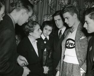 | Keywords: smithsonian institution smithsonianinstitution harringbone suit culver 1946 1940s woman scientist science physics teenagers men standing catholic university catholicuniversity smithsonian institution archives smithsonianinstitutionarchives women's history month womenshistorymonth women in science womeninscience 2010 20th century - mid 20thcenturymid government lise meitner lisemeitner scientists nuclear fission nuclearfission atomic bomb atomicbomb university of vienna universityofvienna blackandwhite indoor black and white Creator: Science Service Subject: Meitner, Lise 1878-1968        Catholic University of America Type: Black-and-white photographs Date: 1946 Topic: Science fairs      Physics      Women scientists Local number: SIA Acc. 90-105 [SIA2008-5997] Summary: During Spring 1946, physicist Lise Meitner (1878-1968), of the Royal Swedish Academy of Sciences, was a Visiting Professor of Physics at Catholic University, Washington, D.C., and met with finalists in the Science Talent Search competition. Left to right: James Alexander Hummel, Lise Meitner, Iloka Karasz, James Benjamin Gibson, Stephen Reynolds Arnold, and George Loweree Gaines, Jr Cite as: Acc. 90-105 - Science Service, Records, 1920s-1970s, Smithsonian Institution Archives Persistent URL:http://siris-archives.si.edu/ipac20/ipac.jsp?&profile=all&source=~!siarchives&uri=full=3100001~!287595~!0#focus Repository:Smithsonian Institution Archives View more collections from the Smithsonian Institution. Creator: Science Service Subject: Meitner, Lise 1878-1968 Catholic University of America Type: Black-and-white photographs Date: 1946 Topic: Science fairs Physics Women scientists Local number: SIA Acc. 90-105 [SIA2008-5997] Summary: During Spring 1946, physicist Lise Meitner (1878-1968), of the Royal Swedish Academy of Sciences, was a Visiting Professor of Physics at Catholic University, Washington, D.C., and met with finalists in the Science Talent Search competition. Left to right: James Alexander Hummel, Lise Meitner, Iloka Karasz, James Benjamin Gibson, Stephen Reynolds Arnold, and George Loweree Gaines, Jr Cite as: Acc. 90-105 - Science Service, Records, 1920s-1970s, Smithsonian Institution Archives Persistent URL:http://siris-archives.si.edu/ipac20/ipac.jsp?&profile=all&source=~!siarchives&uri=full=3100001~!287595~!0#focus Repository:Smithsonian Institution Archives View more collections from the Smithsonian Institution. |
