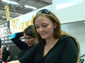 Keywords: Lise Myhre.JPG Lise Myhre at the 2007 Gothenburg Book Fair In the background Nina Hemmingsson Lise Myhre på Bok- och biblioteksmässan 2007 I bakgrunden Nina Hemmingsson own 2007-09 Hannibal Lise Myhre Göteborg Book Fair 2007