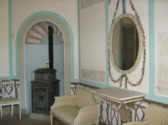 Keywords: Liselund Entree.JPG en Liselund Møn Denmark Corner of the Entree with mirror and Norwegian oven Own Ipigott 2009-09-19 Liselund Møn Stoves in Norway