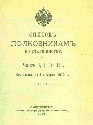 | View Original: | List of colonels of the Russian Imperial Army 1910 (front page).jpg (1170x1564) | |||