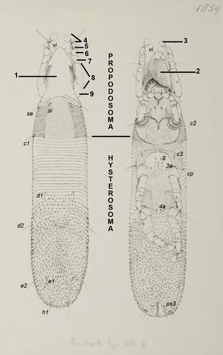 | Keywords: Listrophorus leuckarti external anatomy.png en External anatomy of Listrophorus leuckarti female dorsal and ventral view; gnathosoma unvisible ; 1 prescapular shield 2 attaching flaps 3 ambulacrum 4 pretarsus 5 tarsus 6 tibia 7 genu 8 femur 9 trochanter 2016-02-07 Naturalis Biodiversity Center - RMNH ART 2036 - Listrophorus leuckarti Pagenstecher - Mites - Collection Anthonie Cornelis Oudemans jpeg Naturalis Biodiversity Center - RMNH ART 2036 - Listrophorus leuckarti Pagenstecher - Mites - Collection Anthonie Cornelis Oudemans jpeg Anthonie Cornelis Oudemans derivative work Carabus other versions PD-old-70-1923 Listrophorus leuckarti Acari anatomy |