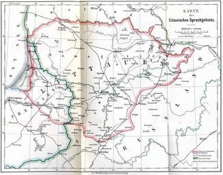 | Keywords: Litauisches Sprachgebiet (1876).JPG Karte des littauischen Sprachgebietes Grammatik der littauischen Sprache von Dr Friedrich Kurschat Professor zu Königsberg i Pr 1876 own scan pd-old Old maps of Lithuania under Russian and German empires Linguistic maps of the Lithuanian language |