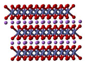| Keywords: Lithium-cobalt-oxide-3D-balls.png Ball-and-stick model of part of the crystal structure of lithium cobalt oxide LiCoO<sub>2</sub> Structural data from cite journal Nature Materials 2 2003 July 7 464 - 467 10 1038/nmat922 Atomic resolution of lithium ions in LiCoO<sub>2</sub> Yang Shao-Horn Laurence Croguennec Claude Delmas E Chris Nelson and Michael A O'Keefem Image generated in http //accelrys com/products/discovery-studio/visualization/discovery-studio-visualizer html Accelrys DS Visualizer Own 2008-07-28 Ben Mills Benjah-bmm27 Images by Ben Mills Lithium cobalt oxide Crystal structures of oxides Crystal structures of lithium salts Crystal structures in space group number 166 |