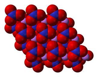 Keywords: Lithium-nitrate-xtal-3D-vdW-A.png Space-filling model of part of the crystal structure of lithium nitrate LiNO<sub>3</sub> Own 2008-04-29 Ben Mills Benjah-bmm27 Images by Ben Mills Crystal structures of lithium nitrate