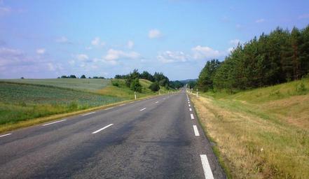 Keywords: lithuania scenic landscape sky clouds road highway trees grass rural nature outside country countryside
