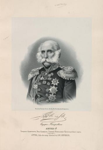 | Keywords: Litkefp.jpeg ru Фёдо Пет о́вич Ли́тке 17 28 сентяб я 1797 Пете бу г 8 октяб я 1882 Пете бу г г аф 1866 усский мо еплаватель геог аф исследователь А ктики адми ал 1855 п езидент Академии аук в 1864 1882 PD-old original upload log page ru wikipedia Litkefp jpeg 2007-04-28 11 18 Netelo 524×760× 34356 bytes <nowiki> Изоб ажение Описание адми ал Ф П Литке Авто неизвестен В емя создания 1858-1861 Источник По т еты лиц отличившихся за</nowiki> Fyodor Petrovich Litke | ||||