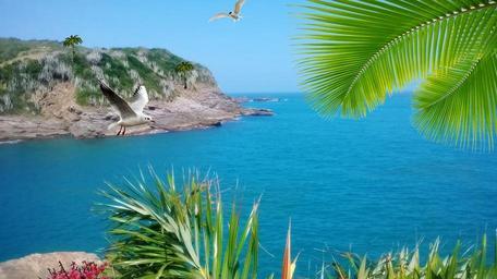 Keywords: litoral serra orla beach mar nature water beira mar ocean sky salt water blue sky tranquility rocks bird stones sand birds seagulls coconut trees island flower shells frame rio de janeiro brazil mata atlantica