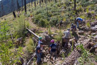 | Keywords: arizona coconino national forest coconinonationalforest dry lake hills drylakehills flagstaff biking organization flagstaffbikingorganization flagstaff ranger district flagstaffrangerdistrict forest service forestservice little bear trail littlebeartrail pentax k-1 pentaxk1 usfs flagstaff forest hiking outdoors trail trail work trailwork volunteer united states unitedstates outdoor vehicle bike Crew members used rocks to build up the trail bed and create protective structures in a drainage to help reduce erosion. The area around Little Bear Trail in the Dry Lake Hills north of Flagstaff, Arizona was burned in 2010 by the Schultz Fire. Subsequent damage caused by heavy monsoon rains has kept the trail closed through the years since the fire. Flagstaff Biking Organization has worked with the Coconino National Forest to organize several trail work days to restore the trail for use by hikers, bikers, and horseback riders. Approximately 25 volunteers and Forest Service personnel gathered on Saturday, September 10, 2016 to continue the efforts to repair drainages and surfaces along the trail. For more information, visit: Coconino National Forest coconinonationalforest.us Flagstaff Biking Organization flagstaffbiking.org Crew members used rocks to build up the trail bed and create protective structures in a drainage to help reduce erosion. The area around Little Bear Trail in the Dry Lake Hills north of Flagstaff, Arizona was burned in 2010 by the Schultz Fire. Subsequent damage caused by heavy monsoon rains has kept the trail closed through the years since the fire. Flagstaff Biking Organization has worked with the Coconino National Forest to organize several trail work days to restore the trail for use by hikers, bikers, and horseback riders. Approximately 25 volunteers and Forest Service personnel gathered on Saturday, September 10, 2016 to continue the efforts to repair drainages and surfaces along the trail. For more information, visit: Coconino National Forest coconinonationalforest.us Flagstaff Biking Organization flagstaffbiking.org |