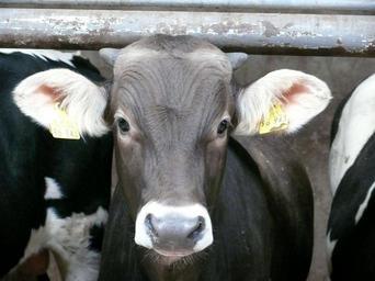 Keywords: little calf cow young animal grey farm