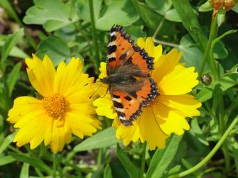 Keywords: little fox aglais urticae flowers yellow plant garden meadow nature pollen botany garden flowers garden plants butterfly animal