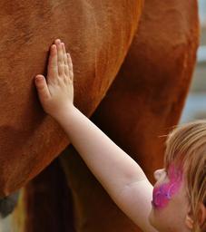 Keywords: little girl big horse stroke love fur hand child's hand connectedness love for animals