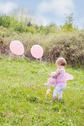 Keywords: little girl with balloons summer happiness outdoors cheerful