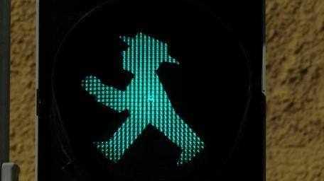 Keywords: little green man traffic lights footbridge traffic signal green males light signal foot gear males road sign road signal lamp go cross pedestrian eastern ampelmännchen ddr