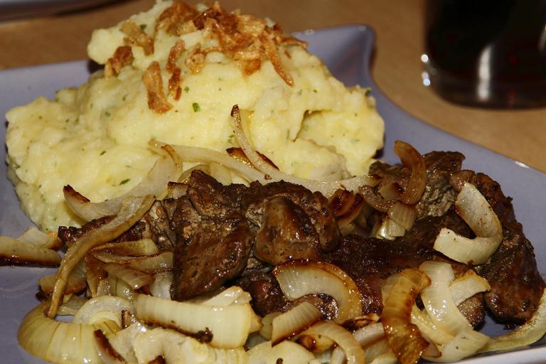 Keywords: liver potato puree onions lunch eat meal food tasty main course delicious court fried