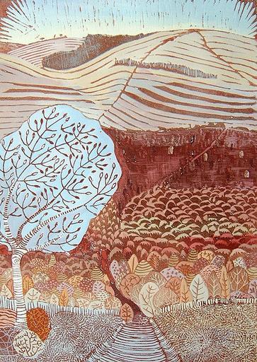 Keywords: Liz Somerville - Beyond the Forest - hand colored lino cut art-call Artistically