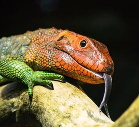 Keywords: lizard head macro reptile tropical tongue wood wildlife nature eye scales colorful animal