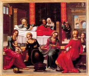 | Keywords: Llanos-natividad.jpg es Natividad de María óleo sobre tabla 194 x 227 cm Retablo mayor de la catedral de Valencia http //pintura aut org/SearchProducto Produnum 54645 Creator Fernando Llanos 1507-1510 Fernando Llanos Retaule major Catedral de València PD-old-100 |