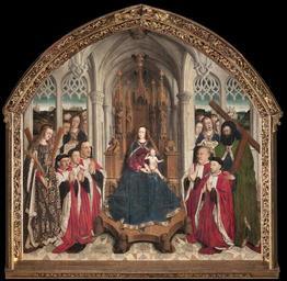| Keywords: Lluís Dalmau - Virgin of the «Consellers» - Google Art Project.jpg - 1443 1445 Before 1428 Active in Valencia and Barcelona 1428 After 1461 1461 Lluís 559646 Dalmau Before 1428 - After 1461 /collection/museu-nacional-dart-de-catalunya/artwork/virgin-of-the-consellers-lluis-dalmau/573568/ Lluís Dalmau /artist/lluis-busquets-i-dalmau-busquets/4127330/ 4127330 /collection/museu-nacional-dart-de-catalunya/ Museu Nacional d'Art de Catalunya - MNAC Barcelona 497131 http //www mnac cat/ 12/28/2011 4 40 33 PM /collection/museu-nacional-dart-de-catalunya/artwork/virgin-of-the-consellers-lluis-dalmau/573568/ 1443 Religion Portrait Oil on oak wood True 3160 573568 True 1445 1443-1445 /collection/museu-nacional-dart-de-catalunya/level/ground-floor/2552108/ Ground floor 3/24/2012 4 42 47 AM 015938-000 http //art mnac cat/fitxatecnica html;jsessionid inventoryNumber 015938-000 lang en Museu Nacional d'Art de Catalunya Painting 1440 1450 w3125 x h3160 x d325 cm 1443-1445 False 1 02195608782435 Object /collection/museu-nacional-dart-de-catalunya/level/ground-floor/2552108/room-26/548450/ Room 26 virgin-of-the-consellers-lluis-dalmau Virgin of the «Consellers» v 3125 Permanent loan from Barcelona City Council 1902 015938-000 Oil on oak wood Religion Portrait special url_id fgE_LWGIqBV-JA PD-old-100-1923 1461 Gothic paintings in the Museu Nacional d'Art de Catalunya Mare de Deu dels Consellers Google Art Project works by Lluís Dalmau Clerics with squirrel garment |