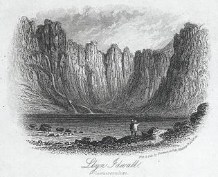 | Keywords: Llyn Idwall, Caernarvonshire.jpeg Abstract A view of Llyn Idwal showing two people standing alongside the lake and the waterfall crashing down from the high mountains in the distance Size mm 176 92 exhibition history Institution National Library of Wales Technique print engraving bw object history object type PD-old-70-1923 place of creation place of discovery 1133467 Llyn Idwall Caernarvonshire Uploaded with GWToolset Llyn Idwall Caernarvonshire http //dams llgc org uk/behaviour/llgc-id 1133467/fedora-bdef image/reference Images uploaded as part of NLW - WMUK collaboration Welsh Landscape Collection Idwal Lake Llyn Idwal 1850s Mountains of the United Kingdom in art Waterfalls in Wales in art |
