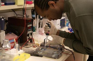 | Keywords: Load DNA Gel.jpg NHGRI researcher Milton English Ph D using a pipette to load DNA into a gel http //www genome gov/Images/press_photos/highres/20015-300 jpg 2004-03-17 Maggie Bartlett NHGRI PD-USGov Agarose gel electrophoresis Molecular biology Maggie Bartlett 2004 |