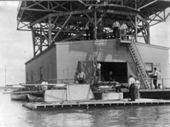 | Keywords: blackandwhite monochrome black and white Samuel Pierpont Langley (1834-1906) attempted to make the first heavier than air aircraft. His models flew but his attempts on October 7 and December 8, 1903 at flight failed. To avoid fatal accidents he conducted his experiments on the Potomac River. Charles Manly piloted the aircraft. In 1914 the Langley aircraft was modified and flown by Glenn Curtiss. Widewater, Virginia July 1903 Samuel Pierpont Langley (1834-1906) attempted to make the first heavier than air aircraft. His models flew but his attempts on October 7 and December 8, 1903 at flight failed. To avoid fatal accidents he conducted his experiments on the Potomac River. Charles Manly piloted the aircraft. In 1914 the Langley aircraft was modified and flown by Glenn Curtiss. Widewater, Virginia July 1903 |