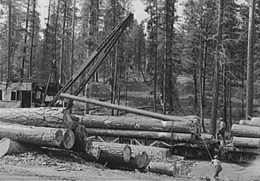 Keywords: Loading logs onto flatcar01.jpg Grant County Oregon Malheur National Forest Loading logs onto flatcar http //hdl loc gov/loc pnp/fsa 8c25202 1942-07 Lee Russell PD-USGov Logging railways in the United States Flat railway wagons
