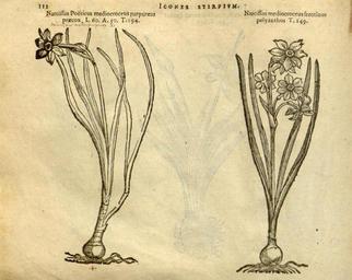 | Keywords: L'Obel Icones Stirpium 112.jpg en Icones stirpium seu Plantarum tam exoticarum quam indigenarum in gratiam rei herbariae studiosorum in duas partes digestae cum septem linguarum indicibus ad diuersarum nationum vsum Page 112 Narcissus poeticus 1591 http //www biodiversitylibrary org/item/37876 page/119/mode/1up Matthias de L'Obel 1538-1616 PD-old-100-1923 Uploaded with UploadWizard Narcissus poeticus 'Actaea' Icones stirpium | ||||