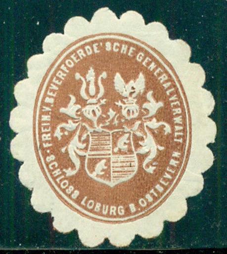 | Keywords: Loburg b. Ostbevern.jpg Siegelmarke mit der Umschrift oben ˛<abbr title Freiherr >FREIH </abbr> <abbr title von >V </abbr> BEVERFOERDE ™SCHE <abbr title Generalverwaltung >GENERALVERWALT </abbr> unten ˛SCHLOSS LOBURG <abbr title bei >B </abbr> OSTBEVERN und dem Wappen derer von Beverfƶrde als Siegelbild own original text selbst erstellt 1 2014 Adelfine PD Other versions Cc-zero DEFAULTSORT Loburg Ostbevern Seals from Ostbevern Loburg History of Ostbevern Seals with German language inscriptions Schloss Loburg Brown sealing stamps 2014 in Ostbevern |
