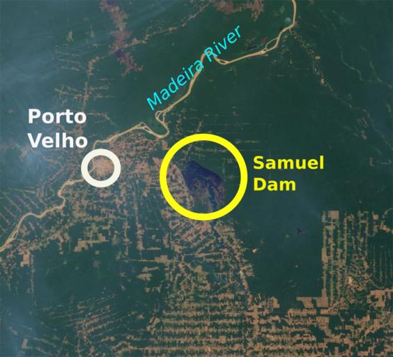 Keywords: Location of Samuel Hydroelectric Dam near Porto Velho, Rondônia.svg en Location of Samuel Hydroelectric Dam near Porto Velho Rondônia 2016-05-15 Adapted from File Fires and Deforestation on the Amazon Frontier Rondonia Brazil - August 12 2007 jpg Image by Jesse Allen and Robert Simmon NASA cropped and annotated by user Aymatth2 other versions cc-zero Rondônia |