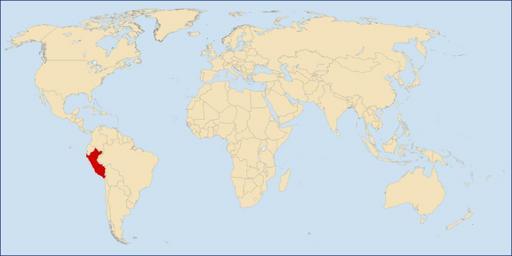 Keywords: LocationPeru(World).png en Location of Peru in the World es Ubicación del Perú en el Mundo own Wikiperuvian 2011-02-07 Cc-zero Locator maps of Peru