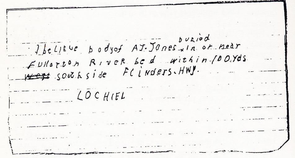 | Keywords: Lochielletter.jpg en Letter describing the location of the body of Anthony John Jones Own Nfren 1988-08-01 Free content Wrong license Check categories 2009 June 27 en wikipedia Tony_Jones_ missing _presumed_murdered Australia Western Australia Perth Western Australia 5 Murder People of Australia Perth Western Australia Anthony John Jones |