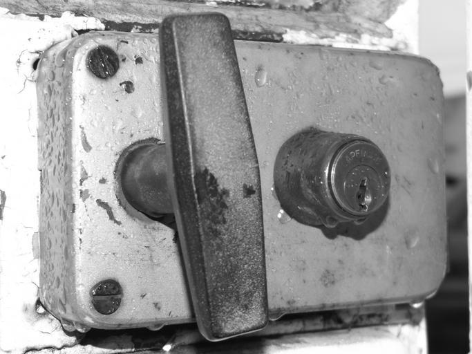 Keywords: lock key black and white door water entry metal drop iron