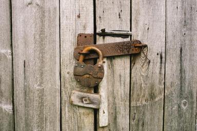 Keywords: locker old rusty weathered lock metal outdoors shut wooden door padlock closed metallic aged