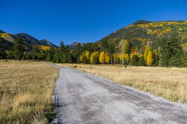 | Keywords: arizona coconino national forest coconinonationalforest flagstaff ranger district flagstaffrangerdistrict forest service forestservice lockett meadow lockettmeadow lockett meadow campground lockettmeadowcampground national forest nationalforest pentax k-1 pentaxk1 usfs fall color fallcolor fall colors fallcolors fall foliage fallfoliage flagstaff forest outdoors united states unitedstates outdoor road hill landscape field mountainside Fall color in Lockett Meadow, October 5, 2016. Most trees are peaking or past peak color in the Inner Basin. Trees are peaking or turning on lower Inner Basin Trail and in Lockett Meadow, with a few small groups past peak and losing leaves. This primitive campground and day use area offers a scenic view of the San Francisco Peaks in the cool aspen trees that surround Lockett Meadow. This is a terrific campground for those who cherish a real mountain camping experience and love to hike wilderness trails. There is a small day use area, making this a beautiful place to have a picnic and enjoy the meadow and Peaks views. The Inner Basin Trail ascends from Lockett Meadow into the caldera of the San Francisco Peaks, an extinct volcano and home of the tallest peaks in Arizona. The first 1.7 miles of the trail winds through the extensive aspen forest flanking the upper reaches of the Peaks, joining the Waterline Trail briefly before following a jeep road into the caldera. The trail starts at an elevation of 8665 feet, gaining approximately 1200 feet over 2 miles on its way into the Inner Basin. The trail continues another 2 miles, gaining an additional 600 feet or so to join up with the Weatherford Trail. Photo by Deborah Lee Soltesz, October 5, 2016. Source: U.S. Forest Service, Coconino National Forest. See Lockett Meadow Campground and Inner Basin No. 29 for information about this area of the Peaks on the Coconino National Forest website. Fall color in Lockett Meadow, October 5, 2016. Most trees are peaking or past peak color in the Inner Basin. Trees are peaking or turning on lower Inner Basin Trail and in Lockett Meadow, with a few small groups past peak and losing leaves. This primitive campground and day use area offers a scenic view of the San Francisco Peaks in the cool aspen trees that surround Lockett Meadow. This is a terrific campground for those who cherish a real mountain camping experience and love to hike wilderness trails. There is a small day use area, making this a beautiful place to have a picnic and enjoy the meadow and Peaks views. The Inner Basin Trail ascends from Lockett Meadow into the caldera of the San Francisco Peaks, an extinct volcano and home of the tallest peaks in Arizona. The first 1.7 miles of the trail winds through the extensive aspen forest flanking the upper reaches of the Peaks, joining the Waterline Trail briefly before following a jeep road into the caldera. The trail starts at an elevation of 8665 feet, gaining approximately 1200 feet over 2 miles on its way into the Inner Basin. The trail continues another 2 miles, gaining an additional 600 feet or so to join up with the Weatherford Trail. Photo by Deborah Lee Soltesz, October 5, 2016. Source: U.S. Forest Service, Coconino National Forest. See Lockett Meadow Campground and Inner Basin No. 29 for information about this area of the Peaks on the Coconino National Forest website. |