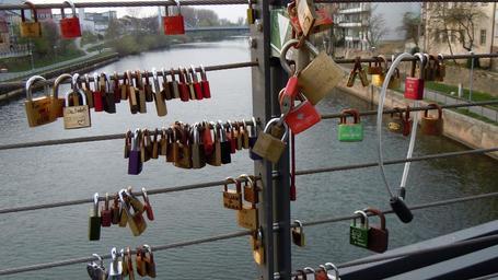 Keywords: locks bridge romantic tradition padlocks collection array romance symbol river famous