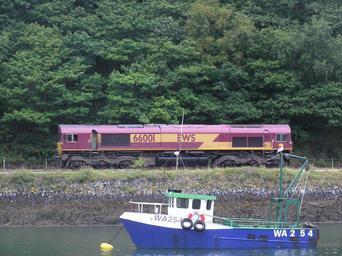 | Keywords: Locomotive EWS 66001.jpg EWS English Welsh and Scottish Railway Class 66 diesel freight locomotive It is photographed getting ready to haul a train of empty china clay wagons at Fowey in Cornwall United Kingdom Locomotive Diesel de Fret du réseau EWS de la série 66 Locomotive fabriquée par Général Motors 126 tonnes 2268 kw Sur la photo elle s'apprête à tracter un train de kaolin extrait à Fowey Cournouaille Grande Bretagne self-photographed 2005 Pline photo personnelle Files by User Pline Lostwithiel and Fowey Line WA254 Dabar ship 1999 British Rail Class 66/0s of English Welsh and Scottish Railway 66001 British Rail Class 66s in English Welsh and Scottish Railway livery 66001 British Rail Class 66s on the Lostwithiel and Fowey Line 66001 Trains of English Welsh and Scottish Railway on the Lostwithiel and Fowey Line 66001 |