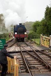 Keywords: locomotive railway heritage steam track points level crossing smoke vapour isle-of-wight