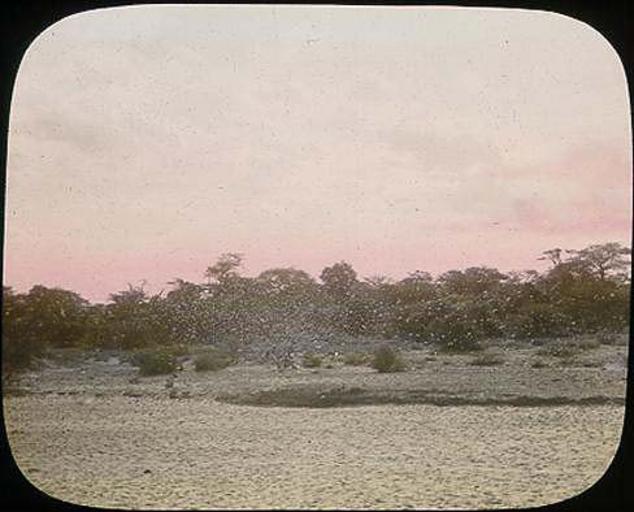 | Keywords: somalia africa expedition d.g. elliot dgelliot carl akeley carlakeley 1896 zoology mammals specimen collection specimencollection outdoor Locust storm of insects. 1896. Name of Expedition: Africa Expedition Participants: D.G. Elliot and Carl Akeley Expedition Date: 1896 Purpose or Aims: Zoology Mammals Location: Africa, Somalia Original material: Hand-colored glass lantern slide Digital Identifier: CSZ6119_LS Learn more about The Field Museum's Library Photo Archives. Locust storm of insects. 1896. Name of Expedition: Africa Expedition Participants: D.G. Elliot and Carl Akeley Expedition Date: 1896 Purpose or Aims: Zoology Mammals Location: Africa, Somalia Original material: Hand-colored glass lantern slide Digital Identifier: CSZ6119_LS Learn more about The Field Museum's Library Photo Archives. |
