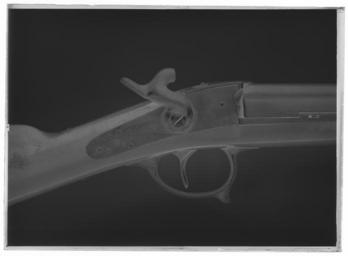| Keywords: Lodbössa för patron med kantantändning, Johannes Hult, Gravås 1868 - Livrustkammaren - 44813-negative.tif LSH artwork Johannes Hult bössmed bonde sv Rund brunerad pipa 8 räfflor Från pipans bakkant till siktet ett platt framåt avsmalnat parti med stämplad signatur J HULT GRAFÅS 1868 Pipan är under kammaren förstärkt med ett stycke med plan undersida Denna ligger på bottenplatta förenad med stötbottendelen Patronläge med ejektor blånerade fjädrar i spår i bottenplattan Slutarmekanism med dubbel spärr För öppning skjuts bakre pipbandet fjäderbelastad spärr framåt varbygeln dras bakåt varvid pipan fälls åt sidan en klack i pipan går ner genom ett spår i bottenplattan och påverkas av en fjäder på plattans undersida Klacken och pipan låses av en skjutregel som påverkas av en tapp på varbygeln Pipans axeltapp går ner genom bottenplattan och låses med en skiva som skruvas in om axeln från bottenplattans framkant Under pipan två klackar som går ner i spår i framstocken Riktmedel Klaffsikte av blånerat stål med två rörliga klaffar den lägre märkt under siktskåran 4 den högre med ett njurformigt hål därunder 6 upptill 8 Brunerad klack med ett blankt stolpkorn av stål 37 mm från mynningen Fästning Pipan fäst vid stocken med en krysskruv en skruv i bottenplattans främre del de tre pipbanden samt av ett pipstift Hanlås med bakåt liggande slagfjäder kedjelänk mellan slagfjäder och nöt Framtill plant låsbleck Rundad hane med på framsidan nätskuret tumgrepp Låda bildad av en platta på kolvhalsen med urtag för stiftet i stötbottnen i samma urtag en fjäderbelastad klack som pressar hanen bakåt efter skottet Sidobleck av samma form som låsblecket Fästning Två låsskruvar Mörkt brunbetsad något flammig helstock i två delar avtagen vid pipaxeln I stocken framför låset urtag för slutarmekanismen på bottenplattans undersida Bakplåt varbygel avtryckare avtryckarbleck l ca 260 mm en skruvbricka tre pipband samt näsband av stål Framstockens bakkant har en mässingsskoning bakom avtryckarblecket samt på mellersta pipbandet två rembyglar av stål original caption 1868 wood e3 - eldvapen - stock material trä - steel e127 - eldvapen - pipa lås och stockbeslag material stål size mm 916 pipa size mm 189 g 4415 size mm 1336 LRK Made in Sweden 2003 J HULT GRAFÅS 1868 anv e1 - eldvapen - pipa; Johannes Hult place of origin original filename LN_B17235_020115 39955 inventory number LRK 3378 44813 CC0 Lodbössa för patron med kantantändning Johannes Hult Gravås 1868 - Livrustkammaren - 44813 tif <gallery caption Different images of same object > File Gevär - Livrustkammaren - 96909 tif </gallery> |