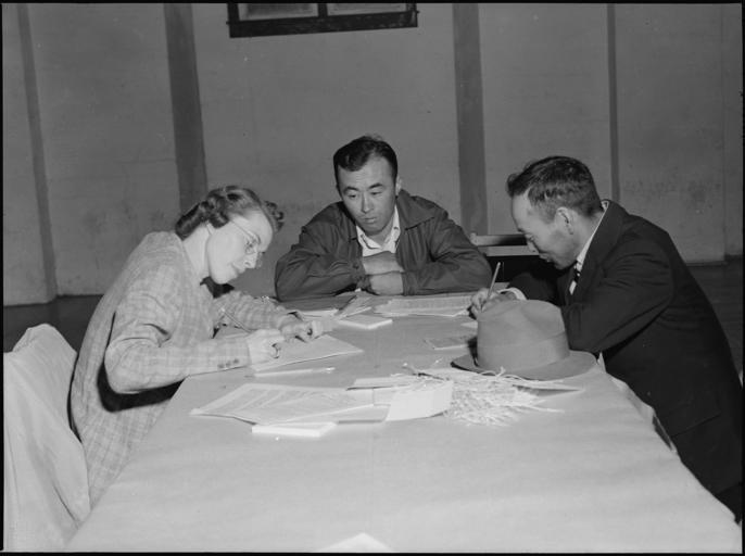 | Keywords: Lodi, California. Father and son give pre-evacuation data at Wartime Civil Control Administration s . . . - NARA - 537627.jpg Scope and content The full caption for this photograph reads Lodi California Father and son give pre-evacuation data at Wartime Civil Control Administration station Evacuees of Japanese ancestry will be given opportunities to follow their callings at War Relocation Authority centers where they will spend the duration General notes 537627 Local identifier 210-G-C280 Department of the Interior War Relocation Authority 02/16/1944 - 06/30/1946 NARA-Author Lange Dorothea 1895-1965 Photographer 1372774 <br /> Still Picture Records Section Special Media Archives Services Division NWCS-S National Archives at College Park 8601 Adelphi Road College Park MD 20740-6001 1942-05-14 Record group Record Group 210 Records of the War Relocation Authority 1941 - 1989 Record group ARC 537 Central Photographic File of the War Relocation Authority compiled 1942 - 1945 Series ARC 536000 File unit File unit ARC Variant control numbers NAIL Control Number NWDNS-210-G-C280 Other versions <gallery> File Lodi _California _Father_and_son_give_pre-evacuation_data_at_Wartime_Civil_Control_Administration_s_ _ _ _-_NARA_-_537627 tif tif File Lodi _California _Father_and_son_give_pre-evacuation_data_at_Wartime_Civil_Control_Administration_s_ _ _ _-_NARA_-_537627 jpg jpg </gallery> NARA-cooperation PD-USGov Dorothea Lange Lodi California |