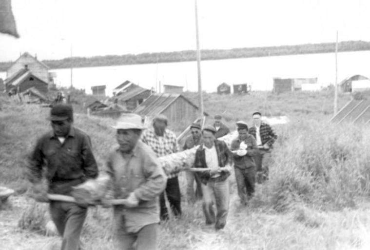 | Keywords: logs construction mennonite mission network mennonite board of missions voluntary service alaska mennonitemissionnetworkmennoniteboardofmissionsvoluntaryservicealaska blackandwhite monochrome outdoor black and white Caption: 1955. Carrying a log up from the beach to the building site. A distance of 250 yards and up hill all the way. Only a few were carried in this manner, most of the logs were hauled on a two wheeled cart pulled by the dogs. Citation: Mennonite Board of Missions. Photographs. Alaska Voluntary Service. 1957-1960. IV-10-7.2 Box 1 Folder 2 Photo VVV. Mennonite Church USA Archives - Goshen. Goshen, Indiana. Caption: 1955. Carrying a log up from the beach to the building site. A distance of 250 yards and up hill all the way. Only a few were carried in this manner, most of the logs were hauled on a two wheeled cart pulled by the dogs. Citation: Mennonite Board of Missions. Photographs. Alaska Voluntary Service. 1957-1960. IV-10-7.2 Box 1 Folder 2 Photo VVV. Mennonite Church USA Archives - Goshen. Goshen, Indiana. |