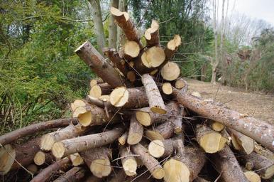 Keywords: log pile countryside stack wood timber woodpile tree